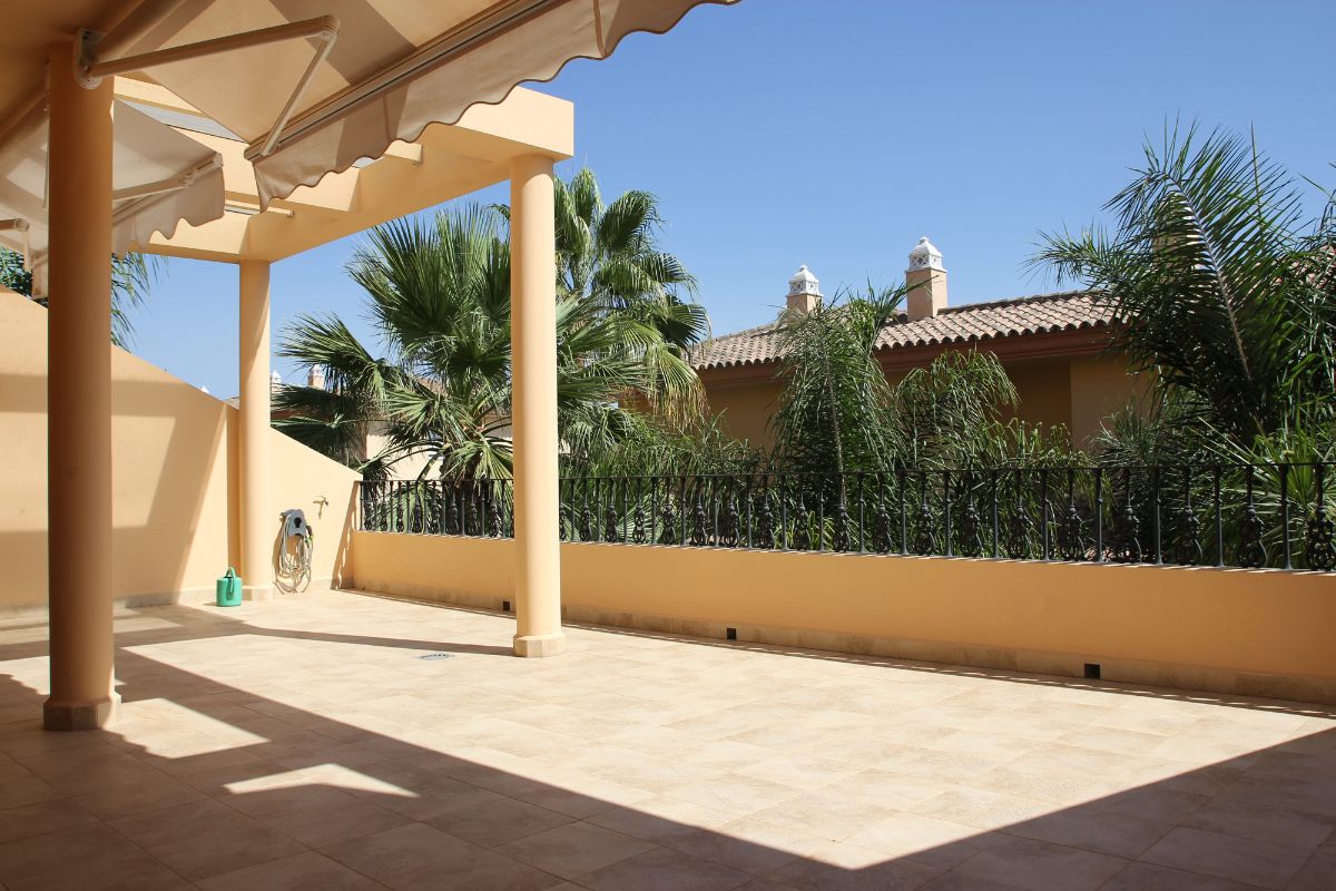 Beautiful and spacious apartment in Vista Real urbanization. New Andalusia. Marbella. Closed complex with tropical garden and large swimming pool. It has a concierge and 24 hour security. Surrounded by magnificent Los Naranjos, Magna Marbella, Las Brisas and Aloha golf courses. Vista Real is very well located, with all kinds of amenities within reach, it is a short drive from Puerto Banús, as well as San Pedro and Marbella, with all kinds of sanitary, leisure equipment, schools ... It is a bright and spacious house that has an entrance, living room that opens to a large terrace of 49 meters with southwest orientation. It has a part covered with glass of 15 m2 with automatic shutters. The master bedroom, en suite, is very spacious, has access to a terrace and the bathroom has two sinks, a shower, a hydromassage bathtub and a built-in wardrobe. the second bedroom also spacious and en suite. It has a guest toilet. The whole house has marble floors, hot and cold AA. The modern kitchen is equipped with BOSCH appliances and has a utility room with a washer and dryer. It has two covered parking spaces and a large storage room.